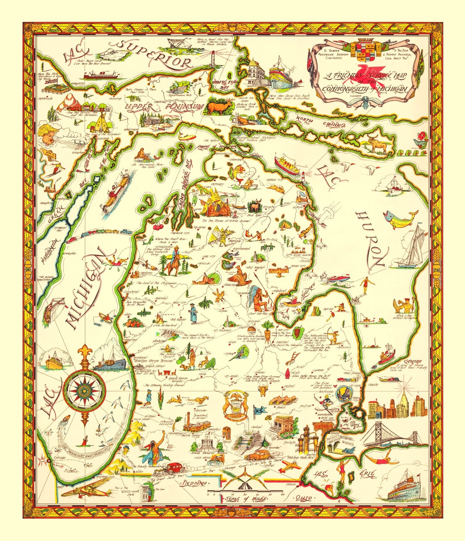 Vintage Map of Michigan 1940